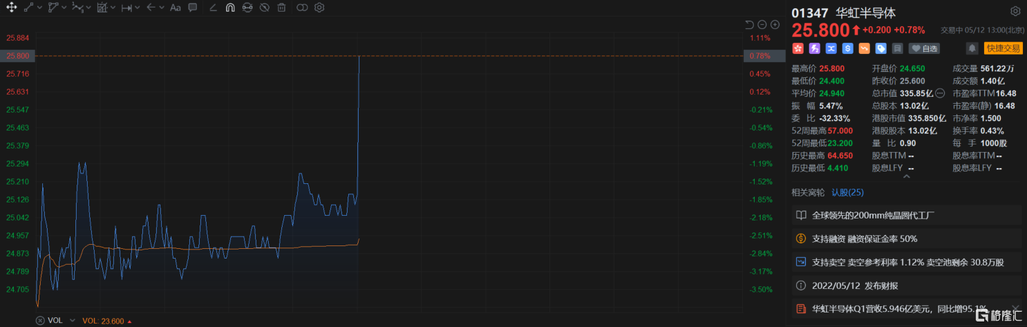港股异动 | 华虹半导体(1347.HK)短线拉升超2% Q1净利润飙升超211.4%