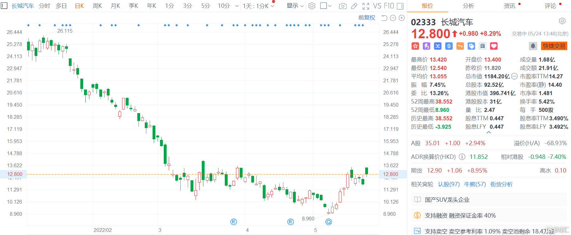 港股异动丨长城汽车涨逾8% 年底或推出燃料电池乘用车品牌