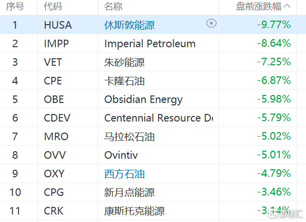 美股异动丨石油股盘前普跌 WTI原油日内跌超5%