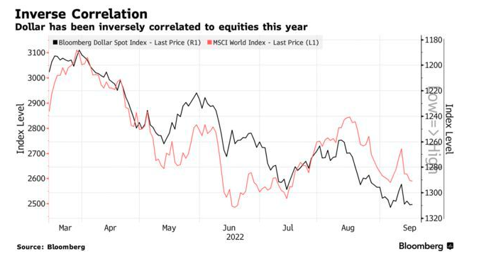 花旗集团的数据显示,鉴于今年以来全球股市已累计损失23万亿美元,美元与风险资产的反向关系使美元成为至少在2022年剩余时间里唯一的避风港。
