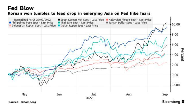 在周二公布的美国8月通胀数据超出预期之后,交易员再次加大了对美联储激进加息的押注。美元走强之下,非美货币多数走弱。日元兑美元汇率继续徘徊在24年来低点,距离备受关注的1美元兑145日元这一重要关口仅一步之遥;加拿大元兑美元的汇率则跌至近两年来最低水平;澳元兑美元也处于多年来新低的边缘。