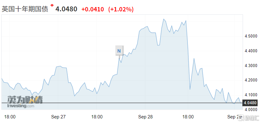 虽然英国央行周三宣布,将从9月28日至10月14日期间购买尽可能多的长期政府债券,以稳定市场。