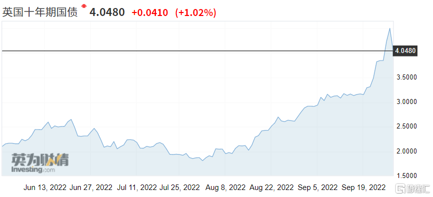 英国国债收益率在两天内飙升 100 个基点至多年高位,美国 10 年期国债收益率和德国国债也被拖累走高。