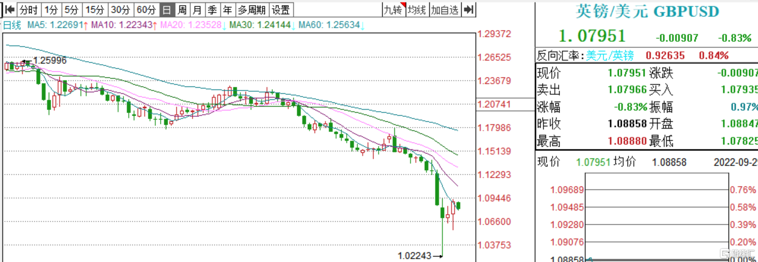 英镑也踏上了暴跌之途,英镑兑美元逼近平价,一度跌破跌破1.04关口,创历史新低。