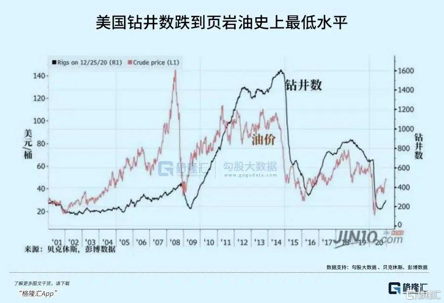 很显然,此举是围剿美国页岩油产业。2020年,美国活跃钻井数量从疫情前高峰的800口暴降至267口,跌幅高达66.7%,创下页岩油15年历史中的最低水平。原油产量下降93.5万桶/日,平均为1130万桶/日,较2019年大幅减少8%,为历年最大年度降幅。