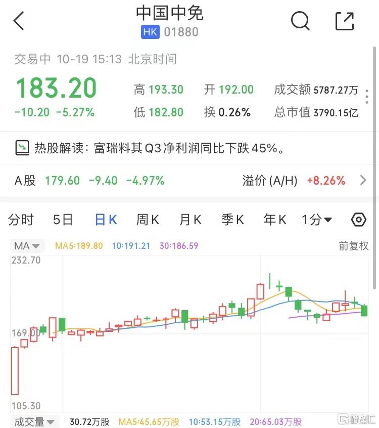港股异动 | 中国中免(1880.HK)跌逾5% 富瑞料其Q3净利同比下跌45%