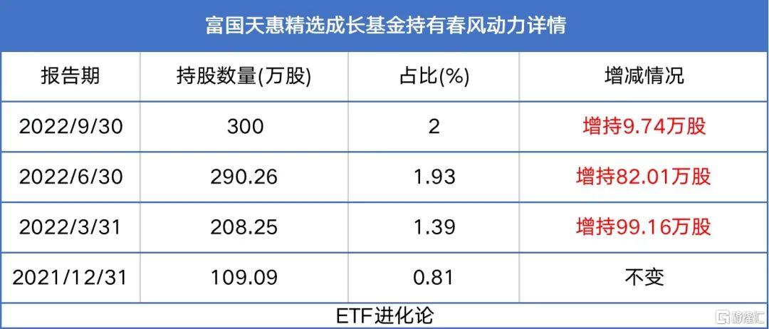 在三季度,朱少醒小幅加仓春风动力。富国天惠基金同样是在2021年四季度新进成为春风动力十大股东,持有109.09万股。随后每季度都加仓,截止三季度末最新持股300万股,按149.87元每股股价算,持股市值4.5亿。