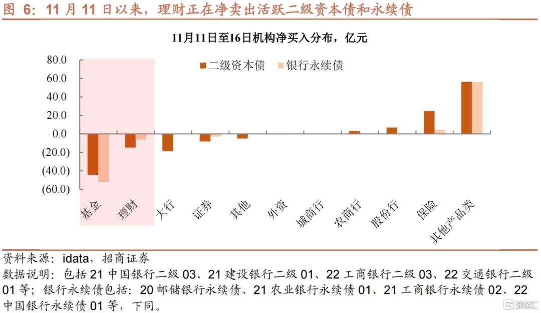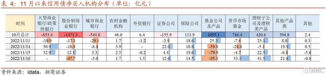 • 第一,理财净买入力度,本轮偏弱。2月至3月,权益资产过快下跌,导致不少固收+产品踩到回撤线。一是出于止损的考虑,二是防范自身负债端波动,理财不得不选择赎回固收+基金。不过,从当时理财净买入信用债的情况来看,3月下旬依旧维持在较高水平,加上新增产品恢复,有效缓释负债端压力。而11月14日以来,基金大规模抛售时期,理财配置虽有,但幅度不及3月,当前负债端压力或超3月。