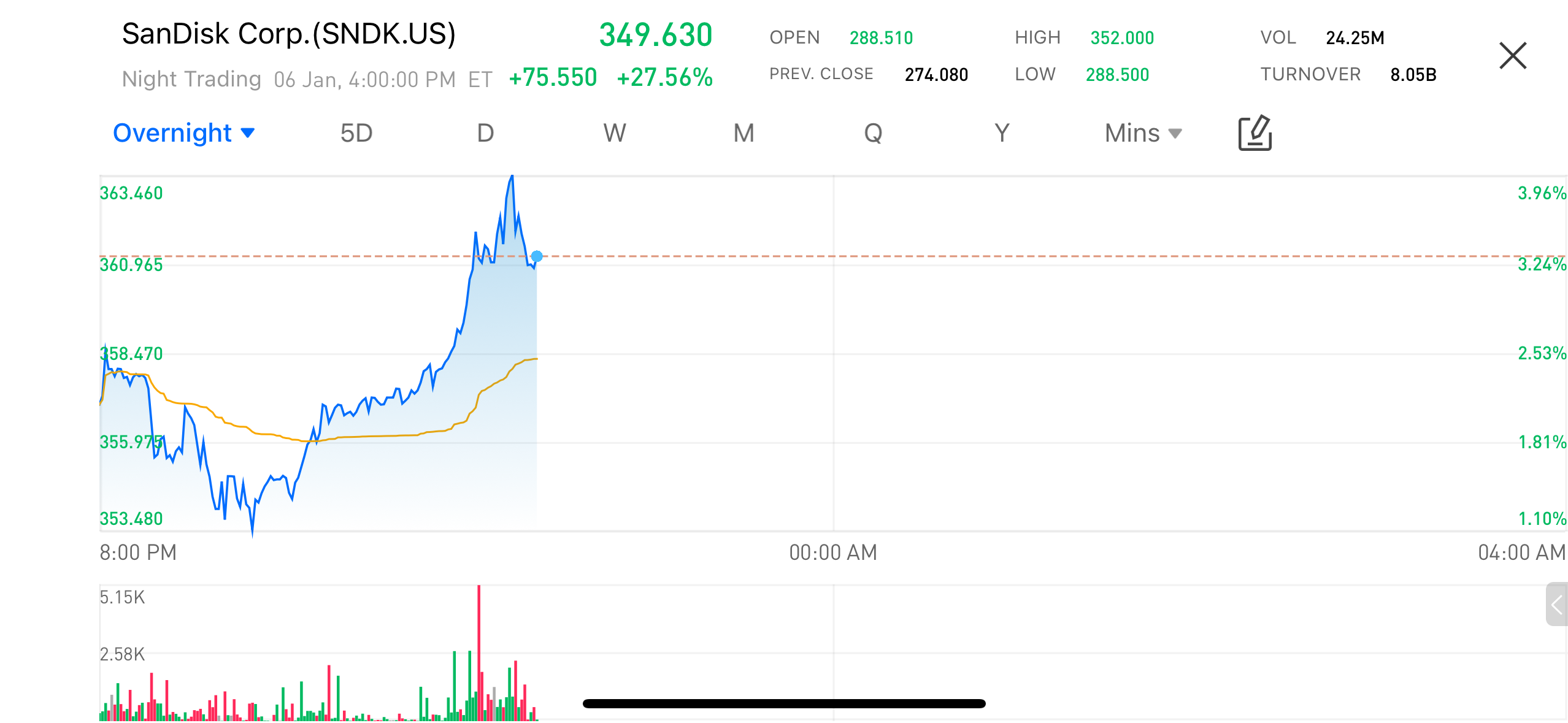 美东时间 1 月 6 日,美股盘后交易中,存储厂商闪迪(SanDisk,SNDK.US)股价大幅拉升,夜盘一度涨逾 27%,成为当日美股科技板块中最受关注的个股之一。与此同时,多只存储相关公司同步走强,显示市场情绪并非集中在单一公司,而是指向整个细分赛道。