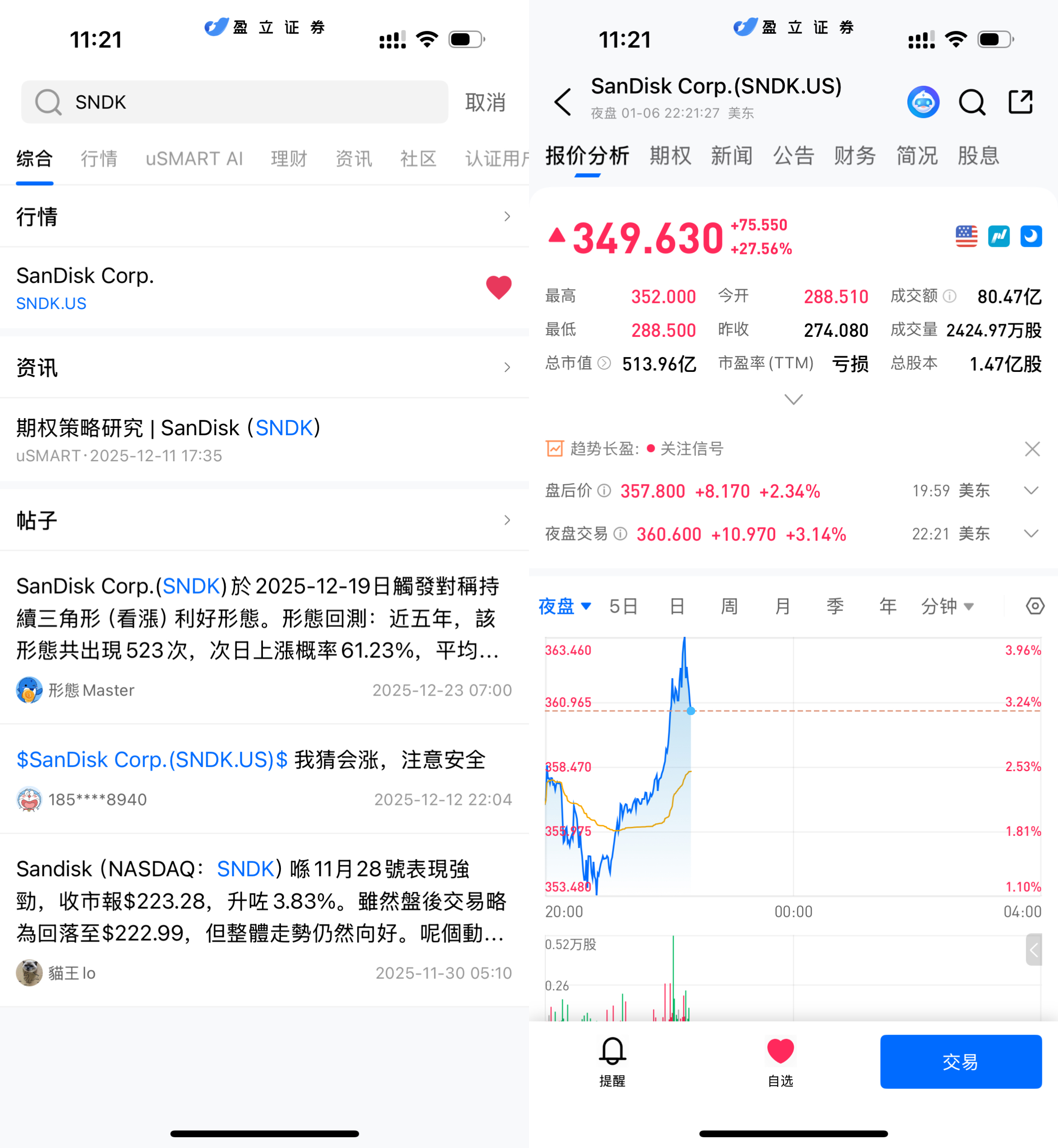 登入 uSMART HK APP 后,于页面最右上方点击「搜索」,输入标的代码(SNDK.US)并进入详情页,了解交易详情与历史走势。点击右下角「交易」,选择交易类型,最后填写交易条件后送出订单即可。