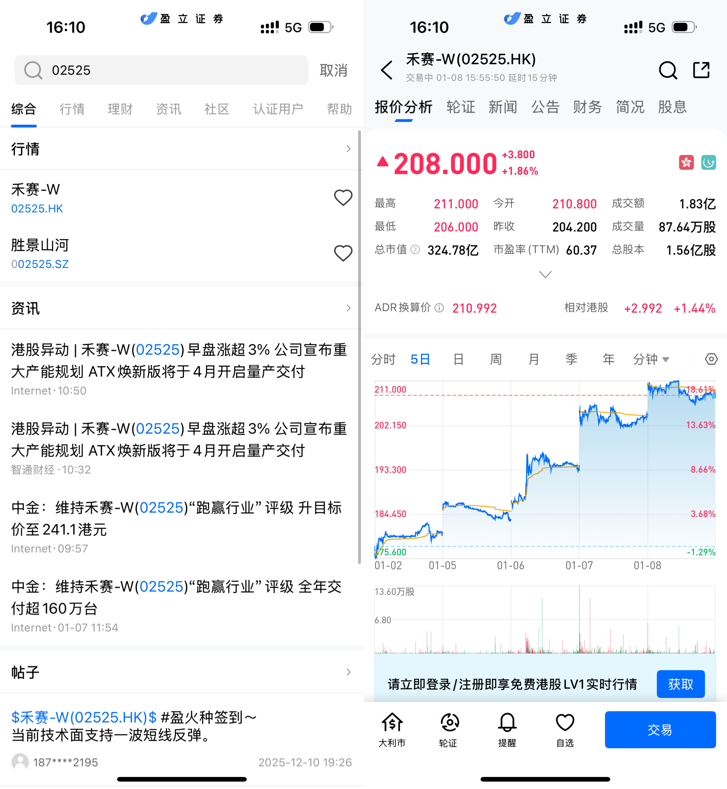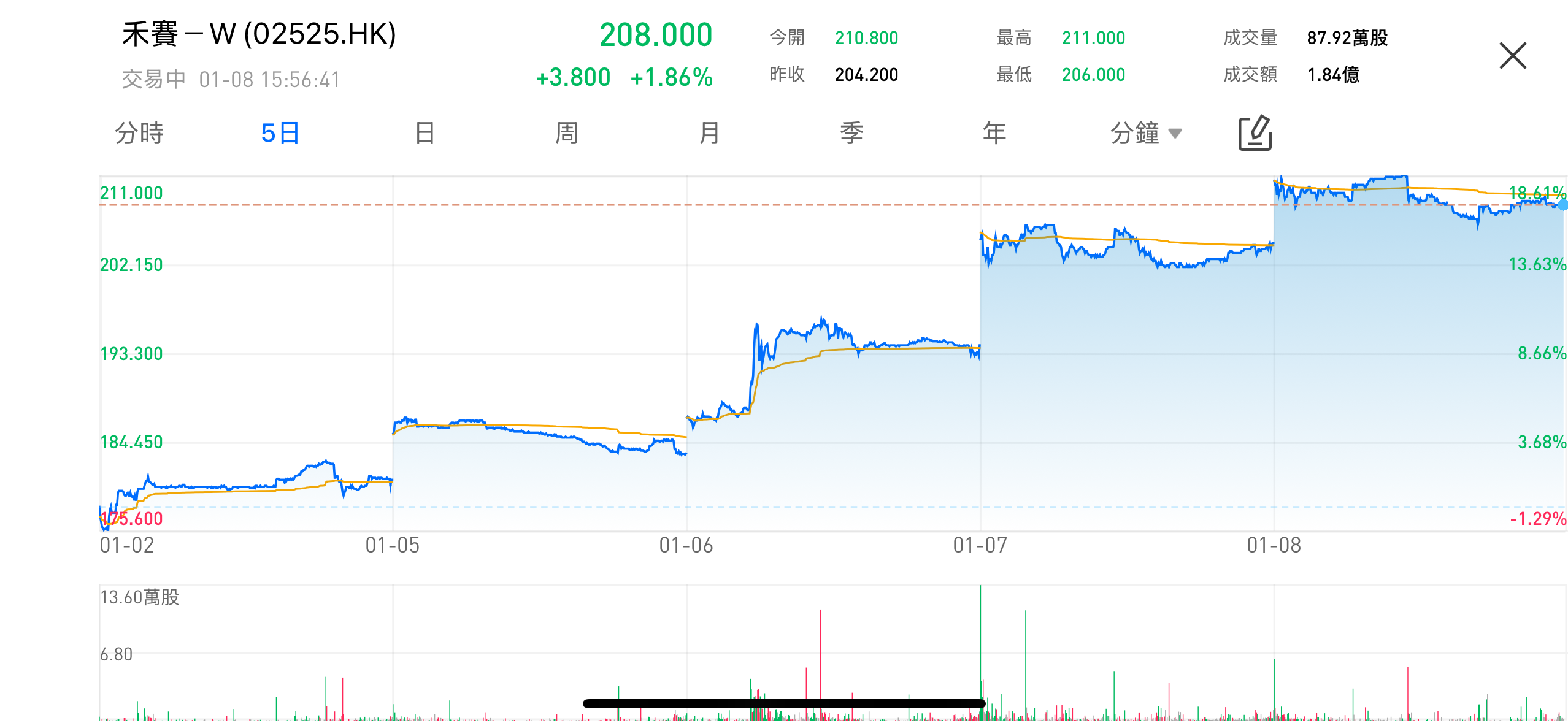 2025年1月8日 — 激光雷达龙头企业禾赛科技-W(02525.HK),近日股价持续走强,市场关注度显著提升。截至今日收盘,该股延续近期上涨态势,一度逼近阶段高点,并伴随成交量放大,显示机构与资金对科技成长板块重新配置热情。