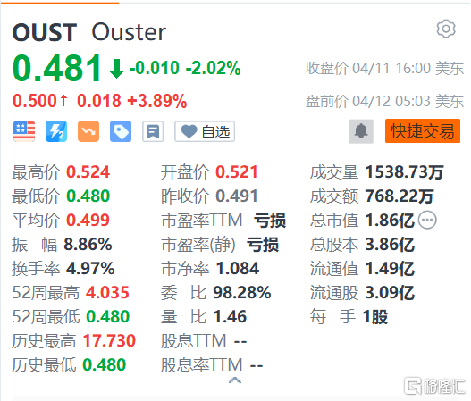 美国异动 | Ouster盘前升3% 拟进行1:10反向股票拆分