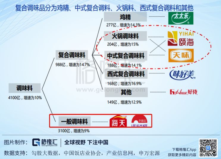 而一般调味料市场的市场规模可以达到3100亿元,细分子领域的行业集中度比调味料行业都要好。在市场空间上火锅底料等调味料和酱油,食醋等调味品相比不是一个数量级的。况且,就产品属性来说,火锅底料的每天重复消费,使用频率远远不如酱油,油盐,醋。