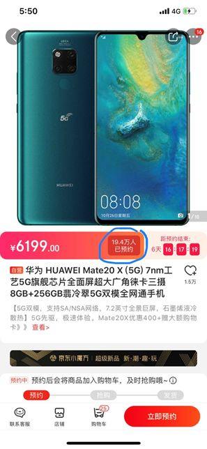 结合之前华为发布了首款5G手机Mate20 X,预计在8月16日上市,售价6199元,现已在各大电商平台和线下渠道接受预定。