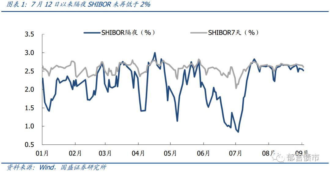明线:7月12日以来隔夜SHIBOR持续高于2%