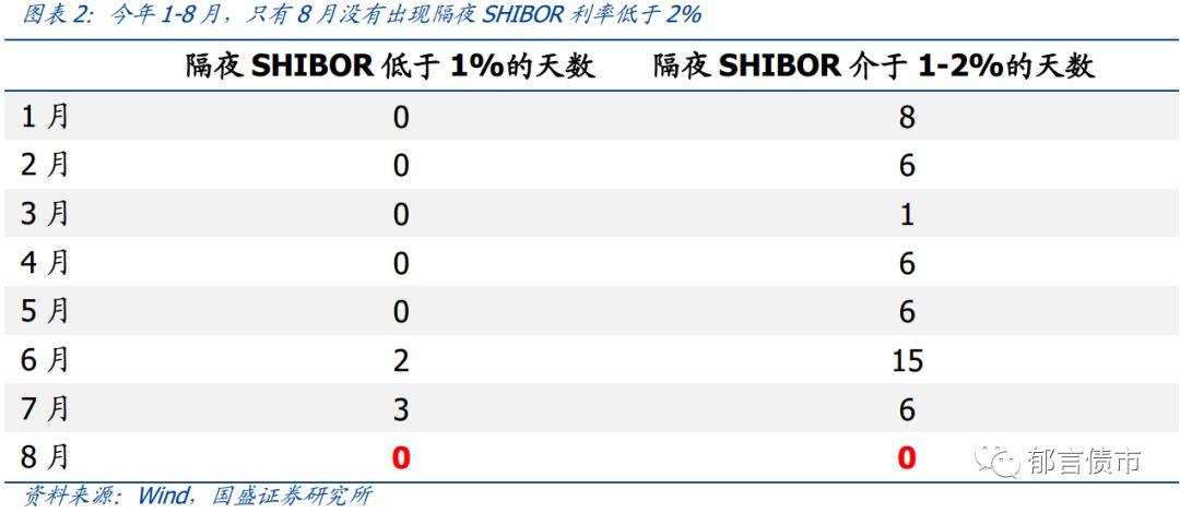 [2] 与2017年以来的超储率进行对比,1.4%的超储率也并非最低水平,因而隔夜SHIBOR难以下探至2%以下的同时,也并没有出现类似4月的流动性紧张局面。