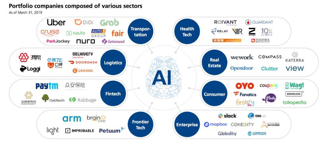 共享经济、人工智能、地产、自动驾驶、网约车、电商、外卖、金融、企业服务、医疗科技…… 软银资本投资的企业覆盖各个行业,横跨几大洲。