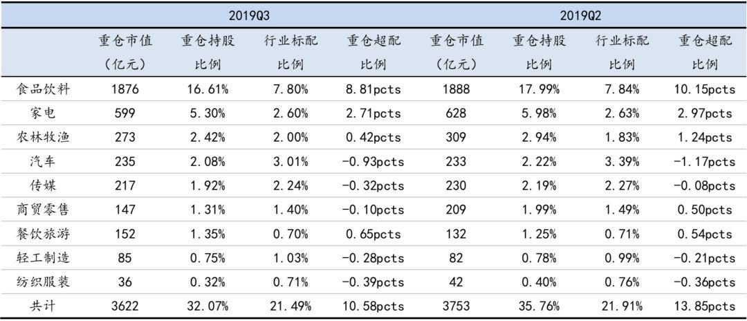 ▼ 2019年三季度大消费行业整体持仓稳定