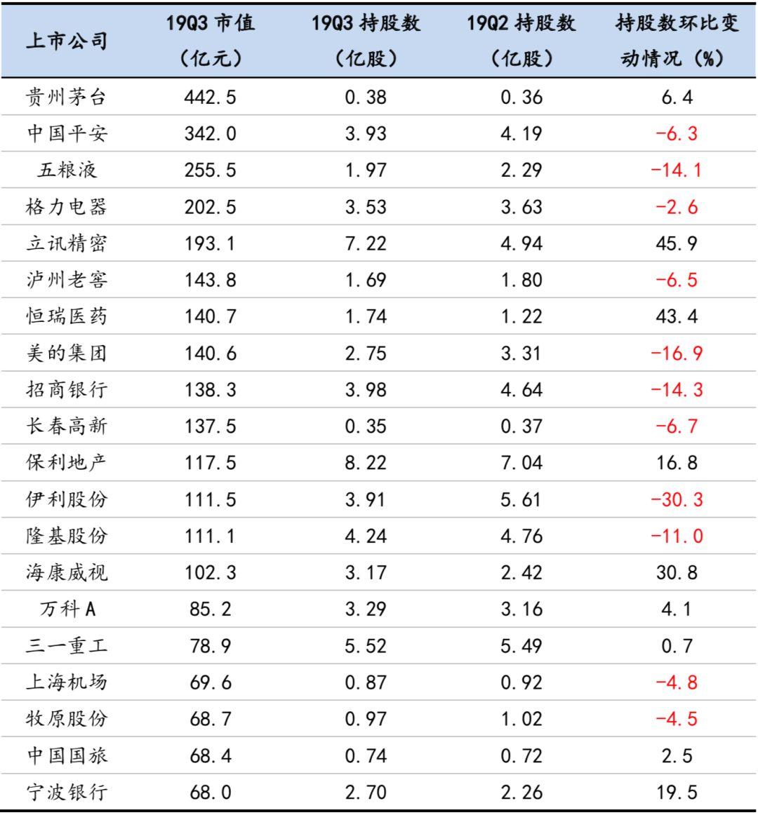前20只重仓股增、减持情况