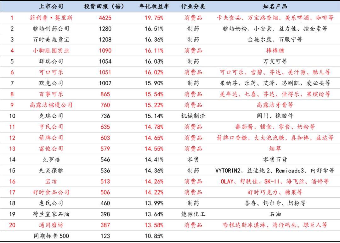 回顾美股近50年历史,快速消费品、医药行业诞生了很多投资回报率惊人的长牛股。