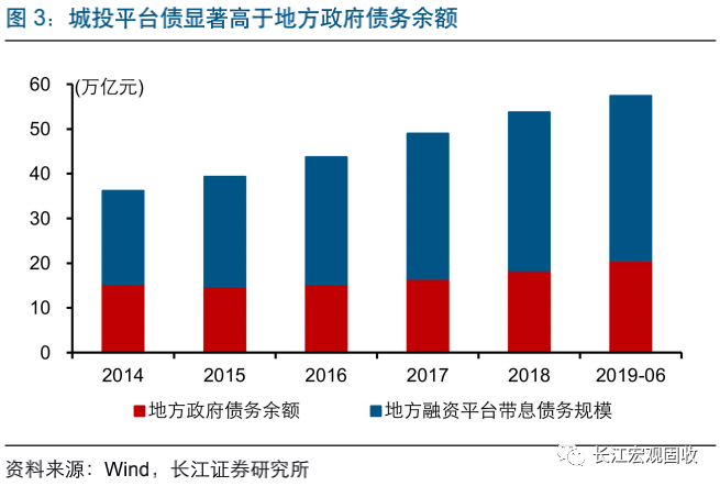 地方融资平台债务压力较大、信用风险事件增多,是防范化解重大风险的重要对象。截至2019年6月,根据Wind口径统计的地方融资平台带息债务规模约有36.8万亿元,远高于地方政府债务的20.5万亿元。作为“三大攻坚战”之首,防范化解重大风险一直在持续推进,从地方债置换到结构性去杠杆,地方融资平台债务是重点防范化解对象。即使在“稳增长”压力较大的阶段,政策也没有放松对控制政府隐性债务方面的要求。