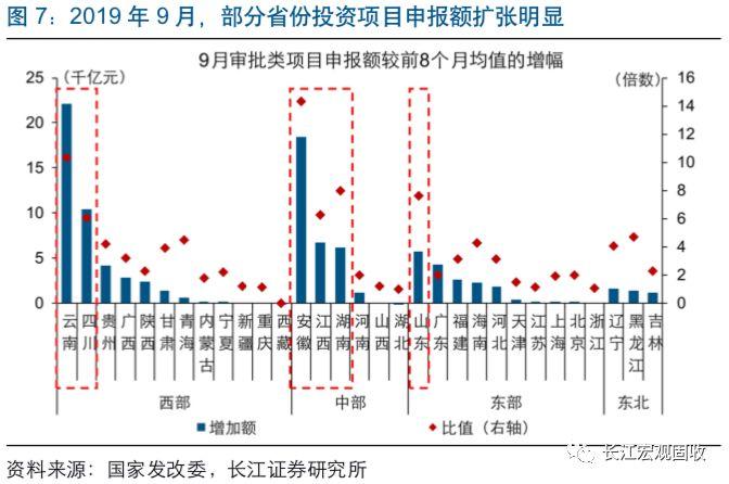 高杠杆压制下,“稳增长”措施对总量经济层面的影响或弱于以往。8月底以来,“稳增长”有所加码,推动项目开工、资金配套和新项目储备等措施陆续落地。发改委数据显示,9月全国投资项目申报额大幅扩张,审批类项目申报额较前月增加188%;但区域分化显著,云南、安徽、四川等6个省贡献了增量的70%,而这些地区债务压力相对较大,加之项目自身现金流偏弱,可能会对项目最终落地情况产生显著影响(详细分析参见《区域视角,看“稳增长”空间?)。