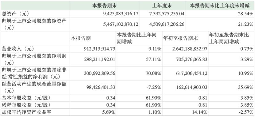公司发布第三季度财报,财报显示,游族网络报告期内营业收入9.12亿元,同比增长9.11%;归属于上市公司股东的净利润为2.98亿元,同比增长57.11%;扣除非经常性损益后,归属于上市公司股东的净利润为3亿元,同比增长70.08%。