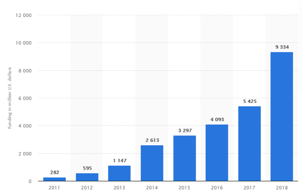 近日,美国著名研究机构CB Insight发布了最新美国人工智能投融资趋势报告。从总体融资情况来看,在2018年,风投机构向美国AI初创公司投资了总共$93亿美元。相比较而言,2013年的AI行业的投资总额仅为$11亿美元。可以看出,近几年来美国AI行业的融资趋势明显走强,热度攀升。
