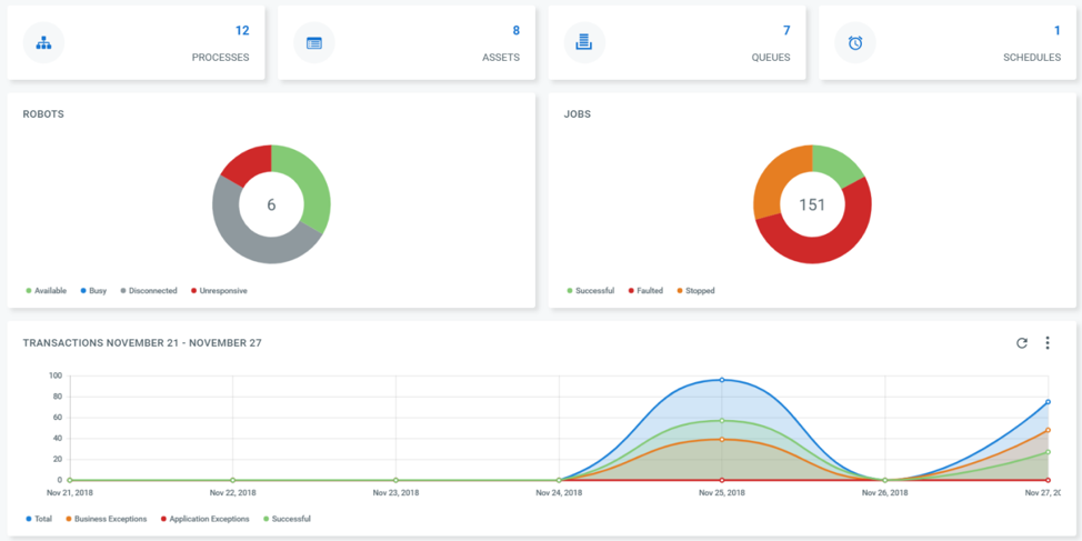UiPath企业RPA平台可以在内部部署或在云中进行,并且包括三个组合元素: 1) UiPath Studio:一个过程模型工具,通过使用功能强大的记录器将可视化的建模过程自动化;2)UiPath Robot: 一位数字化工作者,可以批量或完全独立地执行计划的工作而无需人为介入;3) Unipath Orchestrator: 一个管理控制台,用于为机器人分配自动化需求的任务清单。