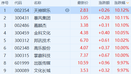 A股市场中,天神娱乐、暴风集团、嘉麟杰、金科文化、邦讯技术等多股涨停。