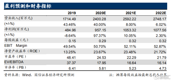 考虑到山东英才和斯坦福国际学校整合效果良好,且内生增长超预期,小幅上调对公司的盈利预测。我们预测公司2020-2022年的收入为24.00、25.92、27.48亿元;净利润上调至9.57、10.53、10.78亿元。
