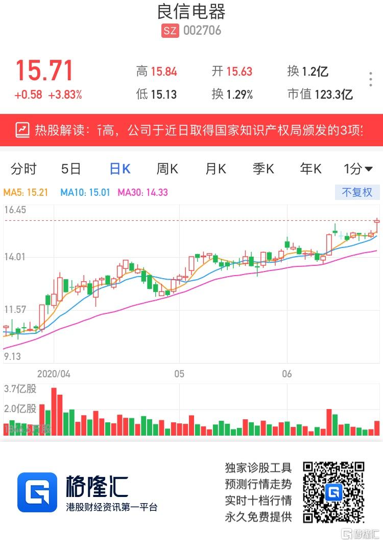 A股异动 | 良信电器(002706.SZ)收涨近4%创新高 取得3项实用新型专利证书