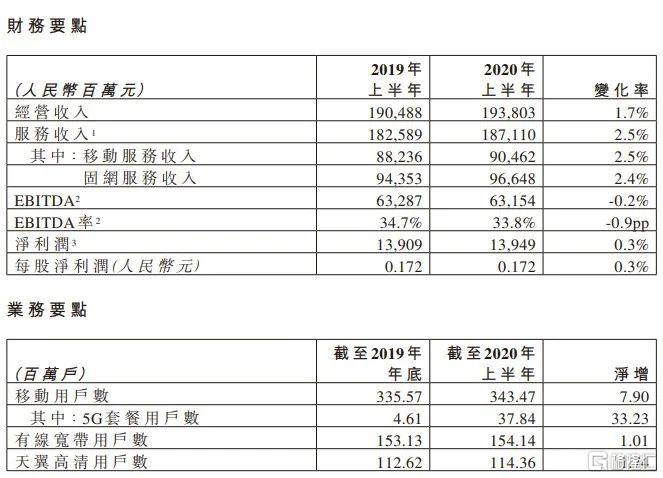 稳!中国电信上半年收入增长1.7% 净利增长0.3%