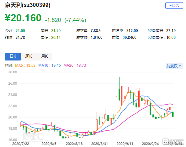 格隆汇10月14日丨京天利(300399.SZ)尾盘跌幅扩大至7.44%,报20.16元,暂成交1.61亿元,总市值39.84亿元。京天利昨晚公告,持股超过5%以上股东江阴鑫源投资有限公司(“鑫源投资”)计划以集中竞价、大宗交易的方式减持公司股份合计不超过1088.6477万股(占本公司总股本比例5.5094%)。一个月前,持股5.25%天津智汇亦拟清仓减持。