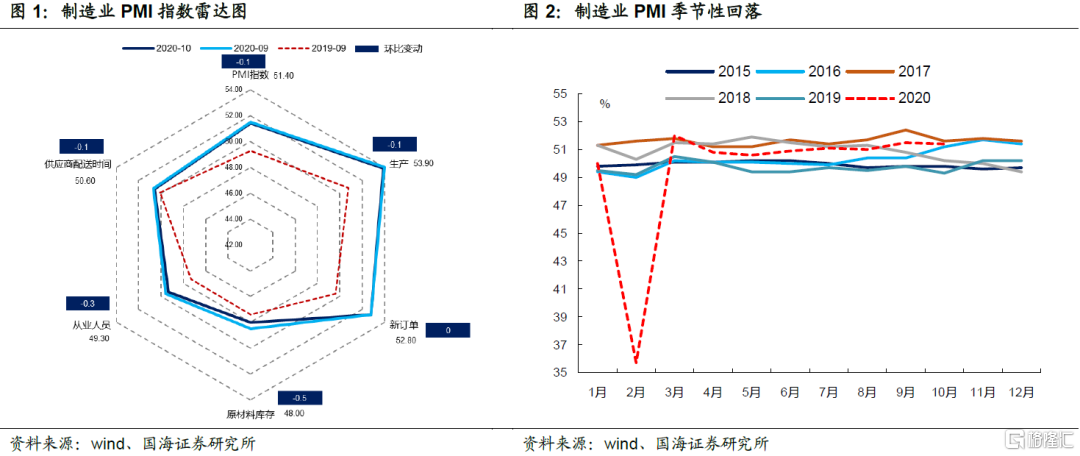 PMI季节性回落,中小企业面临一定压力。10月制造业PMI指数为51.4%,较上月略降0.1个百分点,呈现季节性回落特征。