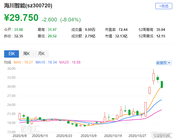 格隆汇11月4日丨近期持续大涨的海川智能(300720.SZ)连续2日回吐超14%,现报29.75元,跌8%,总市值32亿元。海川智能此次解除限售的股份为公司首次公开发行前已发行的部分股份,数量为6619.32万股,占公司总股本的61.29%;此次限售股份可上市流通日为11月6日(星期五)。
