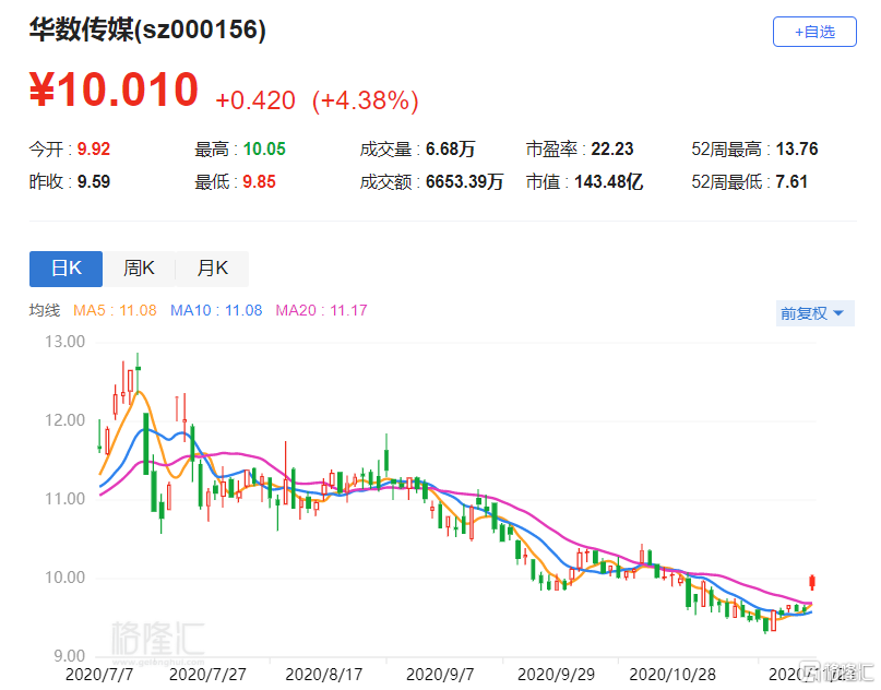 格隆汇11月23日丨华数传媒(000156.SZ)高开高走,现涨4.38%,报10.01元,总市值143.5亿元。华数传媒公布,近日,公司控股股东华数数字电视传媒集团有限公司与阿里巴巴(中国)有限公司(“阿里巴巴”)签署了《战略合作协议》。在当前经济社会全面走向数字化、智慧化的背景下,华数集团与阿里巴巴在原有良好合作的基础上,基于各自资源优势,共同探讨、推进、深化在“新基建”、“新技术”、“新场景”、“新媒体”各领域的战略合作。