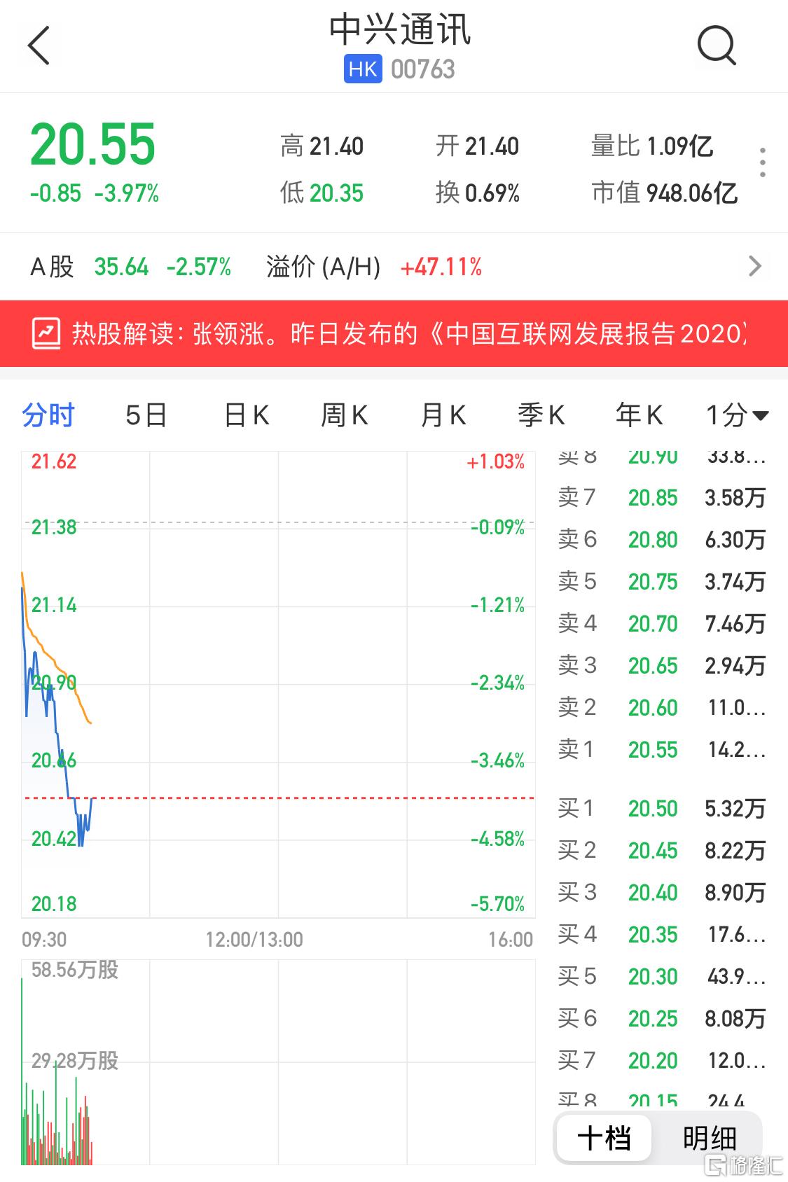 港股异动 | 收问询函 中兴通讯港A齐跌 被深交所要求说明募集配套资金必要性