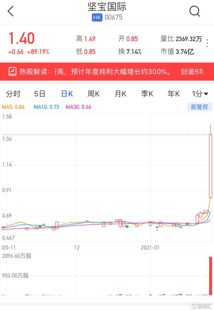 港股異動 | 堅寶國際(0675.HK)大漲90%創逾5年半新高 料年度純利同比增約300%