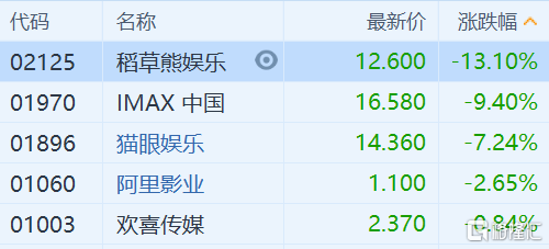 格隆汇5月3日丨港股影视股今日集体走低,稻草熊娱乐跌超13%,IMAX中国跌超9%,猫眼娱乐跌超7%,阿里影业跌超2%,欢喜传媒跌近1%。据灯塔专业版实时数据,截至2021年5月3日9时51分39秒,2021年五一档总票房(含预售)已突破9亿元。当前档期票房前三影片分别为:《你的婚礼》3.05亿;《悬崖之上》2.18亿;《秘密访客》1.35亿。