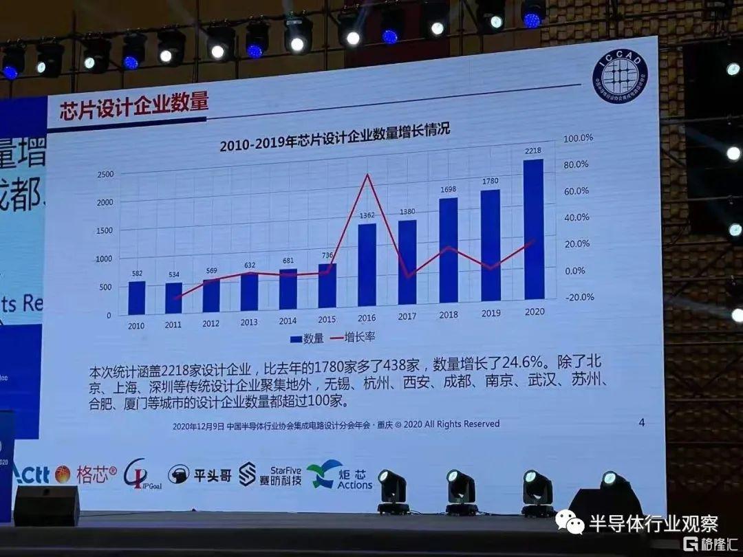 从魏少军教授在去年ICCAD公布的数字来看,2020年我国芯片设计企业共计2218家,同比增长了24.6%。而从整体上看,在2010到2019年我国芯片设计企业数量增长的变化情况中可以看到,2016年是我国芯片设计企业增长的一个高峰期。而这也与其他地区涌现出大量的半导体初创企业的时间相同。