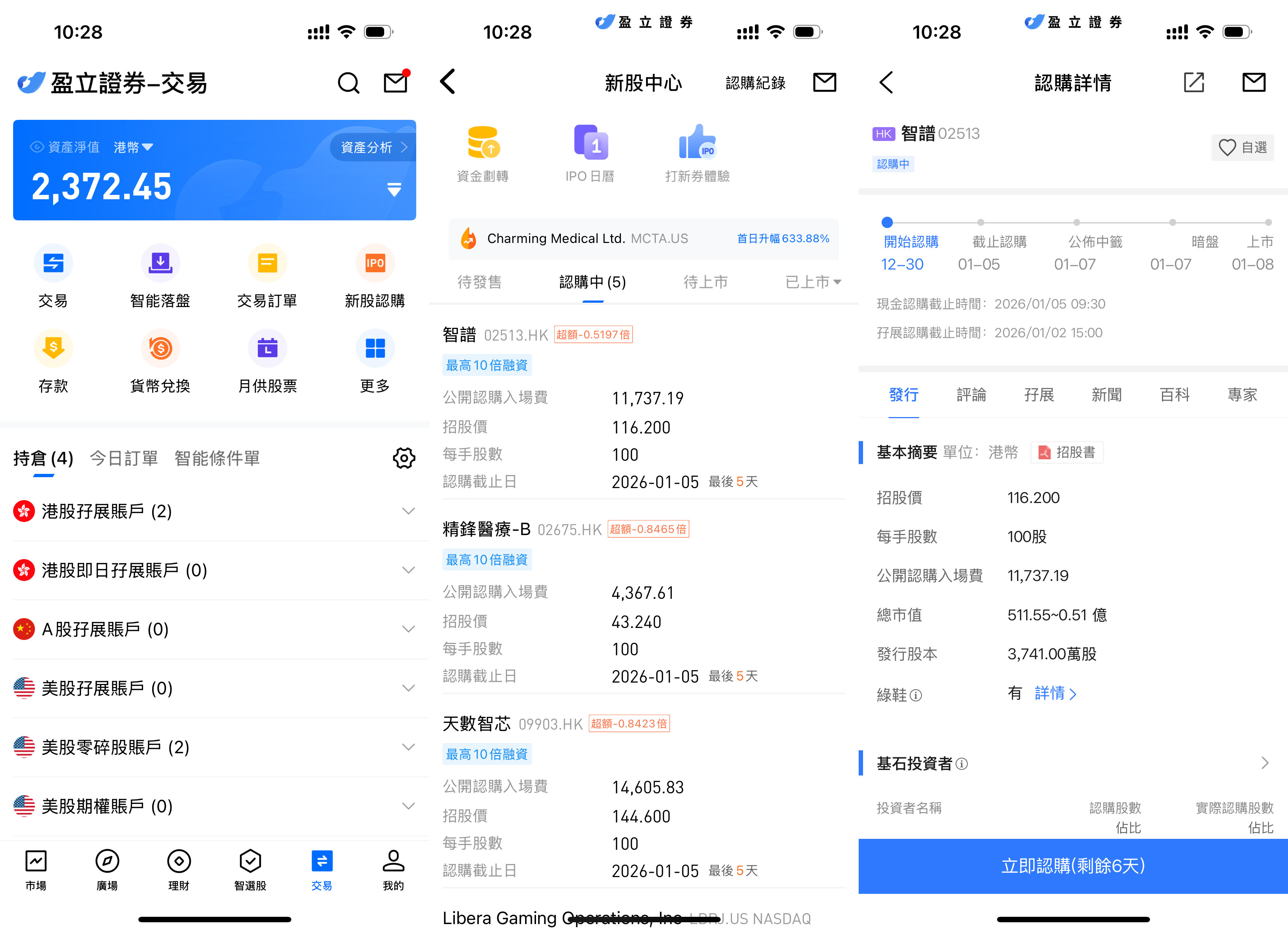 uSMART HK App 設有 IPO 中心,提供獨家優惠,客戶可在 App 即時認購公開發售之新股。登入 uSMART HK App 後,點選右下角「交易」,進入「新股認購」,選擇智譜後點擊「公開認購」,填寫認購數量並提交訂單即可。