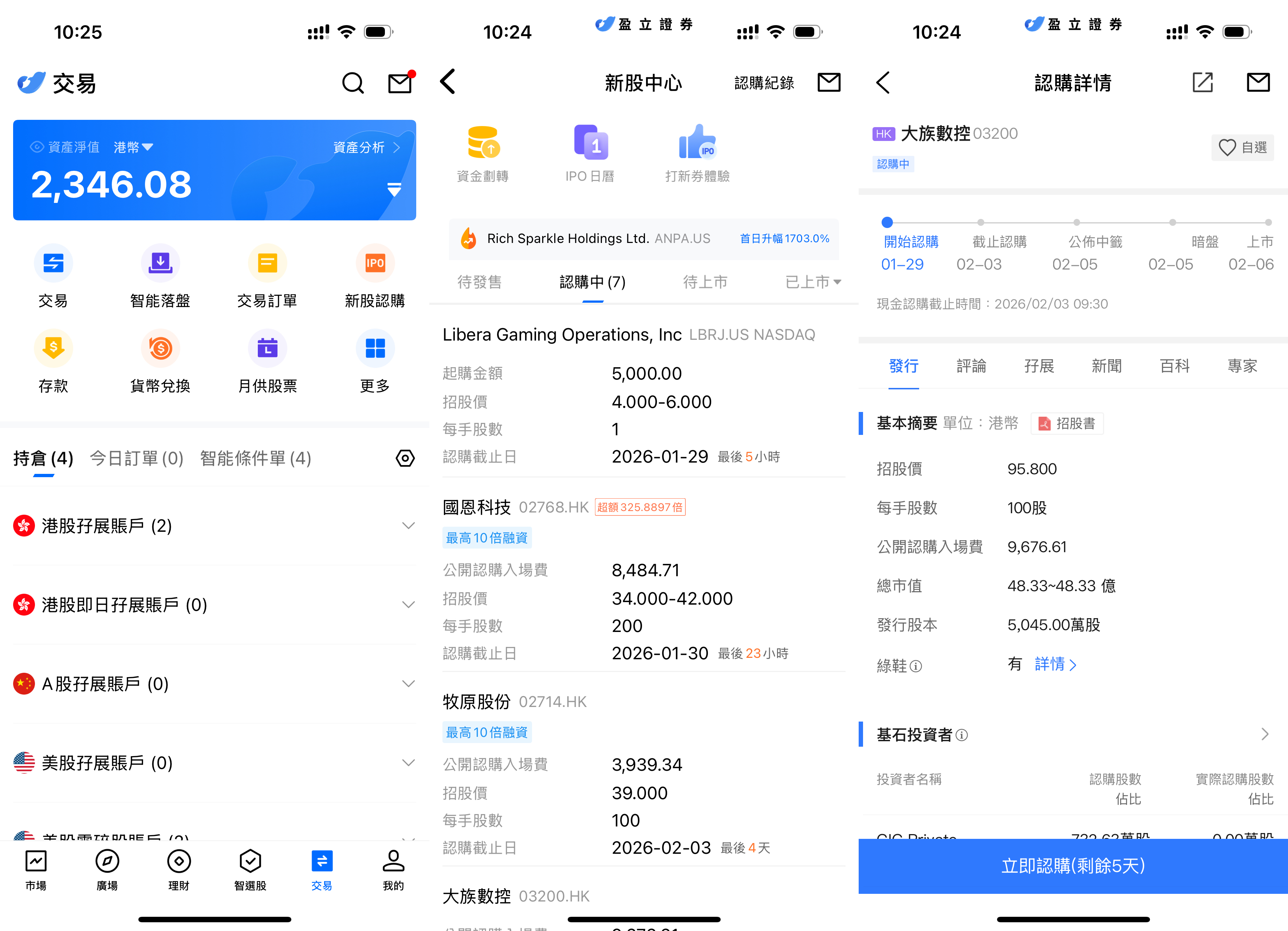 uSMART HK App 設有 IPO 中心,提供獨家優惠,客戶可在 App 即時認購公開發售之新股。登入 uSMART HK App 後,點選右下角「交易」,進入「新股認購」,選擇大族數控後點擊「公開認購」,填寫認購數量並提交訂單即可。