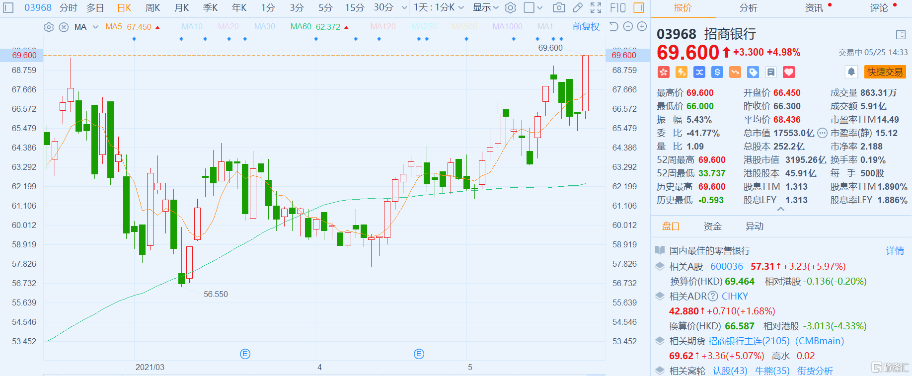 港股异动丨招商银行(3968.HK)涨近5% 创历史新高