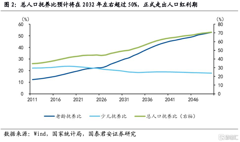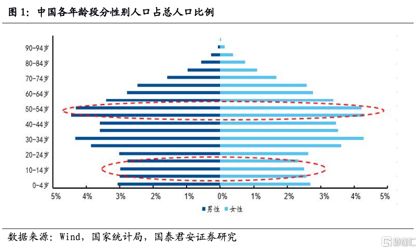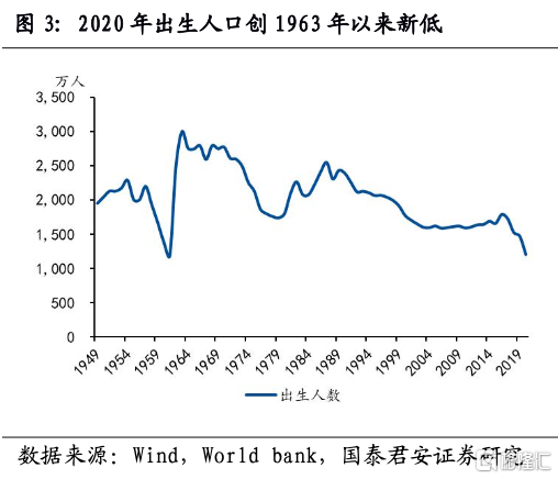 國君宏觀團隊在2018年的報吿《人口“通縮”時代正在拉開大序幕(20181226)》中已經開始強調人口通縮大勢已成。我們不否認,中國人口質量的工程師紅利將不斷釋放,但中國人口問題依然有兩個維度形勢嚴峻,一方面是存量人口的年齡結構惡化,另一方面是增量的新生兒數量不足,即老齡化與少子化的衝擊。