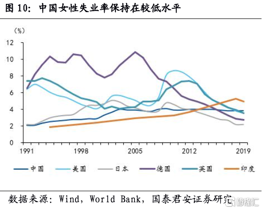 中國女性在勞動參與率長期高於世界上絕大多數國家的同時,保持着較低的失業率。因此,中國女性生育的機會成本相對較高。對職業女性來説,生育的黃金年齡往往也是關鍵的事業上升期。生育之後可能面臨收入降低、支出倍增、生活質量下降等一系列問題。因此,傳統儒家的多子多福概念在女性承擔更多社會責任的背景中開始缺位和受到質疑。沒有養兒防老需求的情況下,更多職業女性會選擇少生育甚至不生育。