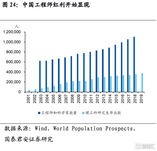 3、老齡化問題終將無法解決,智能製造的大時代正當其時,人工替代與工控系統前景無限。我們已經看到勞動人口會快速下降的未來,那麼應對這個問題,一方面是工程師紅利的對沖,另一方面就是人工替代背後的設備與工控系統的進一步覆蓋。過去幾年這一趨勢已經洶湧來襲,但是我們認為當前並未到中國勞動人口下行最迅猛的階段,因此上述領域的成長空間將進一步被打開。