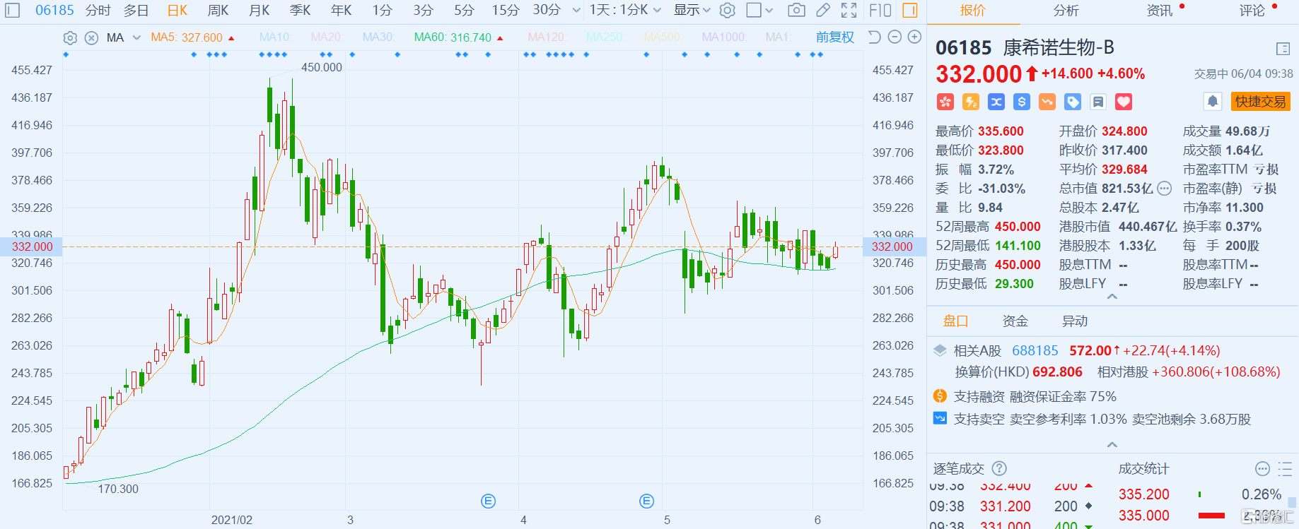 格隆汇6月4日丨康希诺生物-B(6185.HK)逆势涨4.6%,报332港元;康希诺(688185.SH)亦涨逾4%。中国工程院院士陈薇在昨日举行的浦江论坛上表示,疫苗既可以通过皮下注射,还可以通过鼻喷雾式吸入,后者所需的剂量是前者的1/5,而且可以形成黏膜免疫。“鼻喷雾式/吸入型新冠疫苗正在申请紧急使用。”6月2日,康希诺董事长兼CEO宇学峰在青岛的一次会议上表示,康希诺的鼻喷雾式/吸入型新冠疫苗现已进入二期临床试验。另据港交所披露文件,5月31日,摩根大通在康希诺生物(06185.HK)的持股比例从5.92%上升至9.25%。