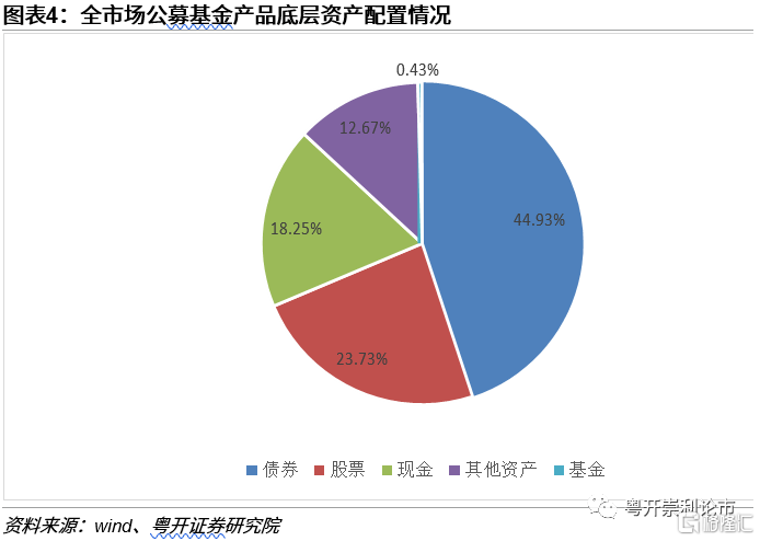 從公募基金一季報公佈的持倉結構上看,不同類型基金的資產配置類型和比例上有差異顯著。貨幣型基金在現金、固定收益投資和買入反售金融資產上分散配置,佔比分別為35.97%、37.98%和24.92%;債券型基金(包括純債基金和二級債基)主要配置固定收益資產,固收資產佔比達93.43%,偏股混合型基金與普通股票型基金都以權益資產作為主要配置標的,權益資產分別配置了68.27%和83.74%的權重。不同類別的產品權益資產配比差異很大,可以滿足不同風險偏好投資者的需求。而綜合來看,雖然市場經歷了大幅波動和短期回撤,權益資產仍具備較高的收益預期,是絕大多基金獲取超額收益的主要來源。