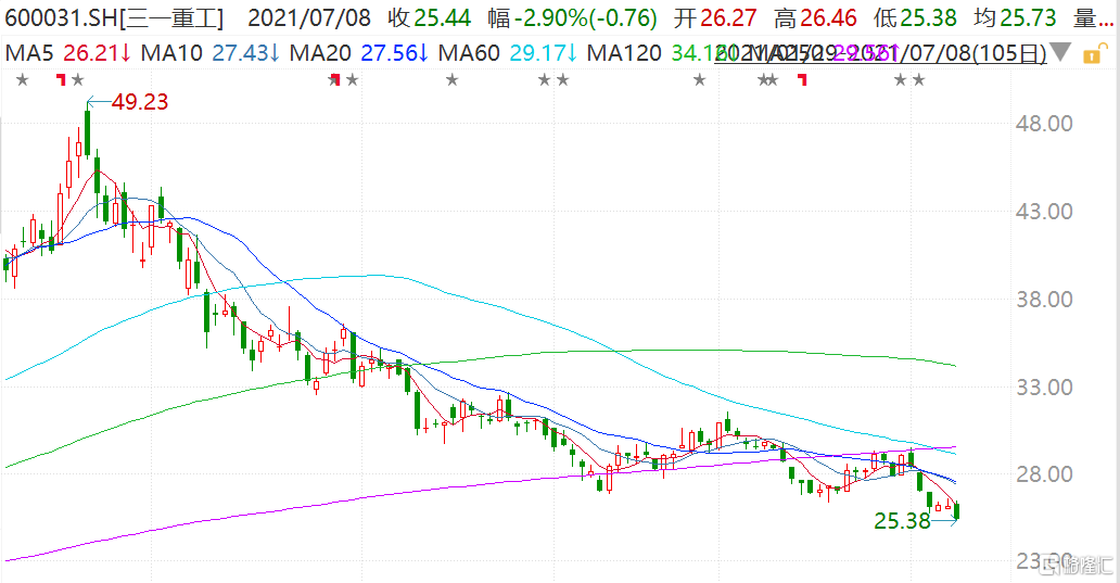 三一重工(600031.SH)再創調整新低 較最高價近乎腰斬